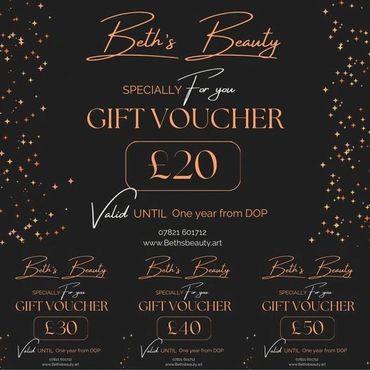 Phone/Text 07749733193 or contact@bethsbeauty.art